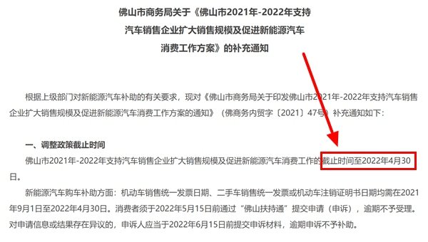 2021年8月24日,佛山市商务局发布了《佛山市2021年-2022年支持汽车销售企业扩大销售规模及促进新能源汽车消费工作方案的通知》,2022年佛山新能源汽车补贴政策如下: